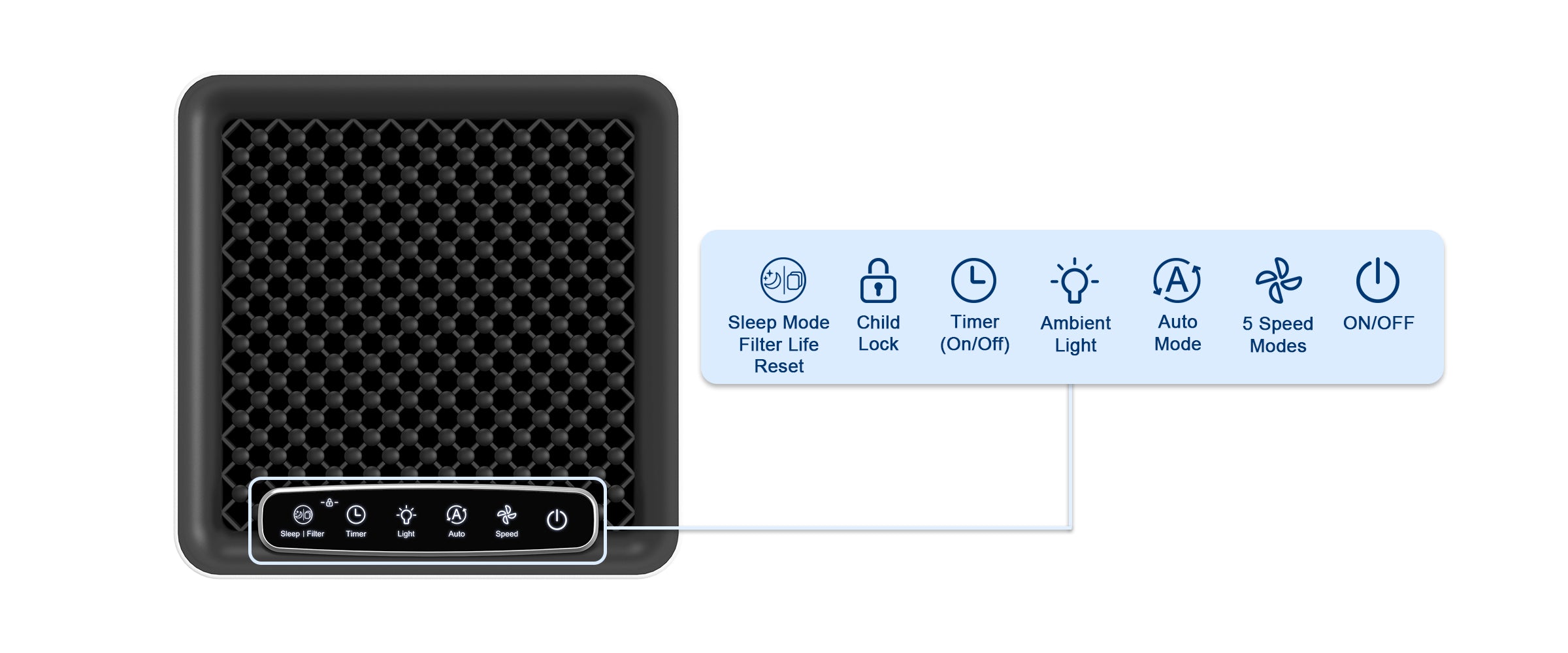 5x Air Changes: Quickly refreshes the air five times in rooms up to 238 sq ft.