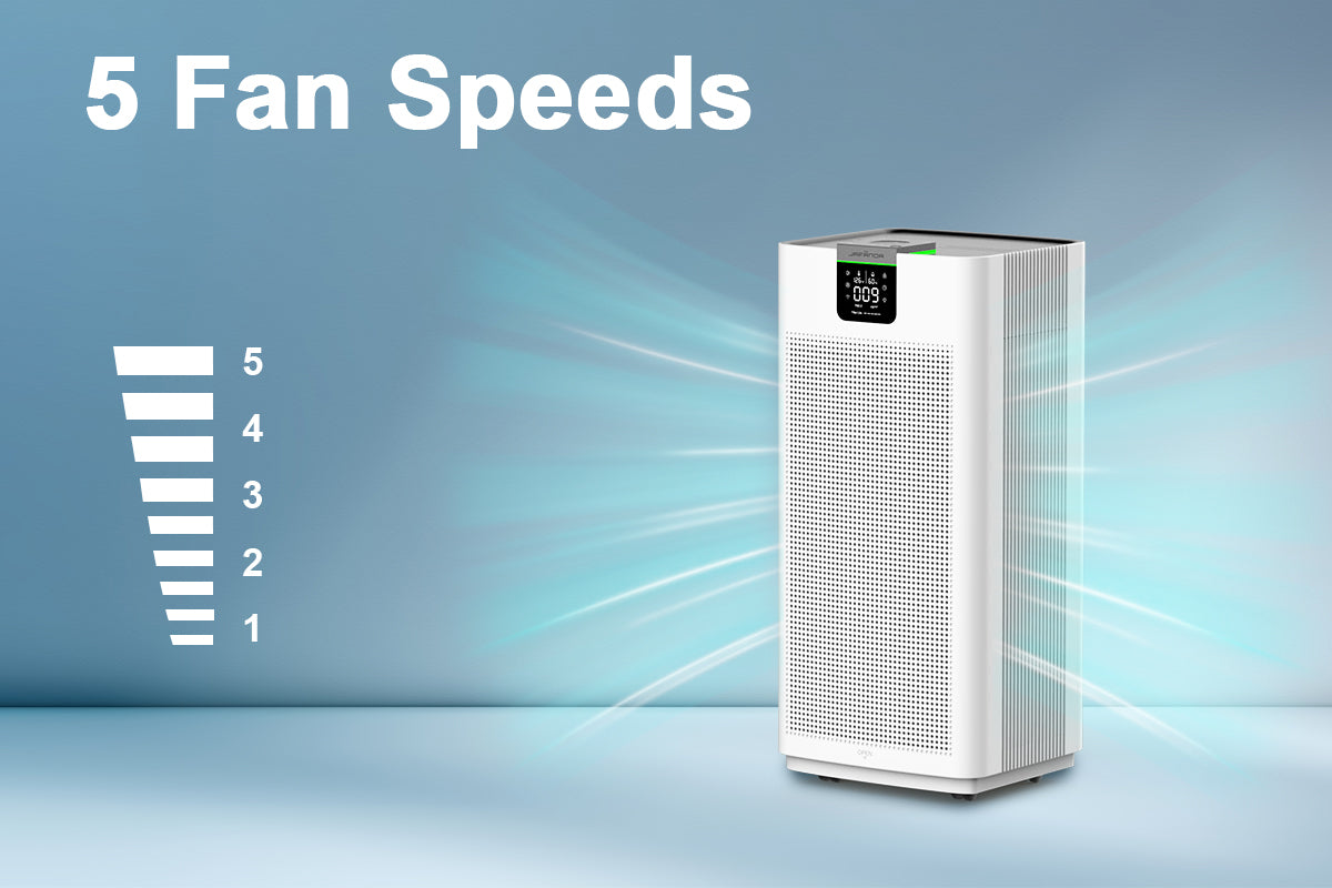 5x Air Changes: Quickly refreshes the air five times in rooms up to 915 sq ft.