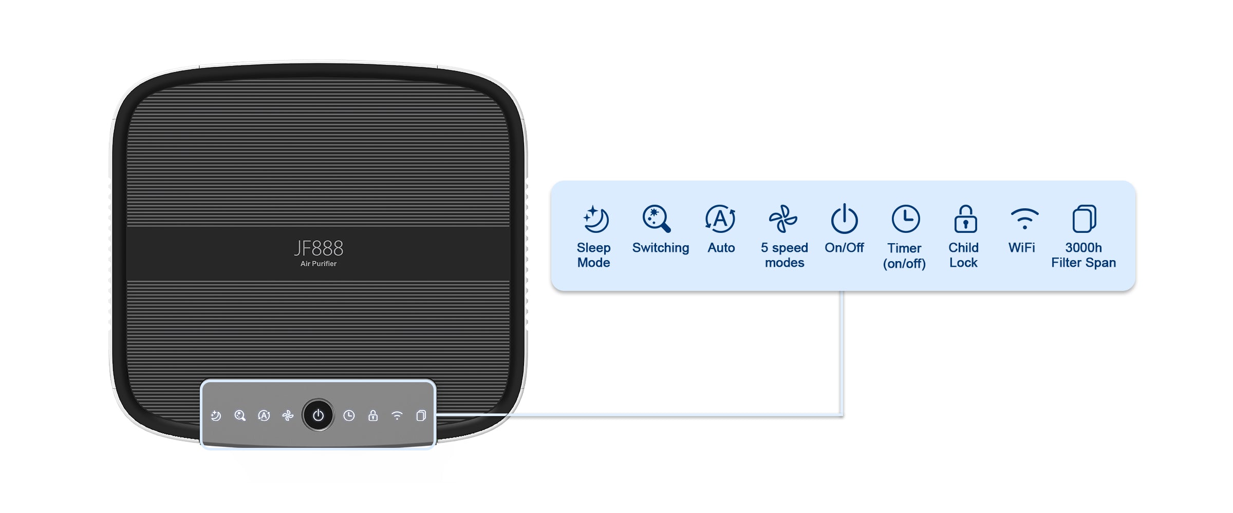 Perfect for large commercial spaces, open-concept homes, and multi-room environments, the JF888 delivers exceptional air quality.